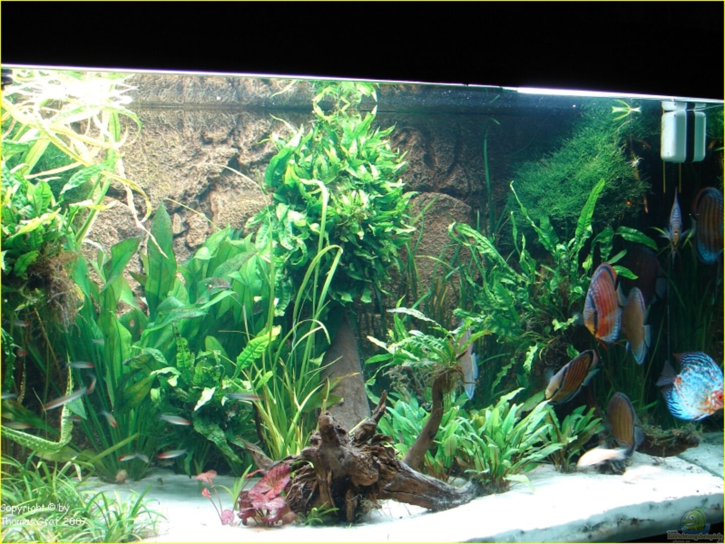 Desweiteren befinden sich mehrere Wurzeln im Becken um den Diskus Unterstandmöglichkeiten zu geben.