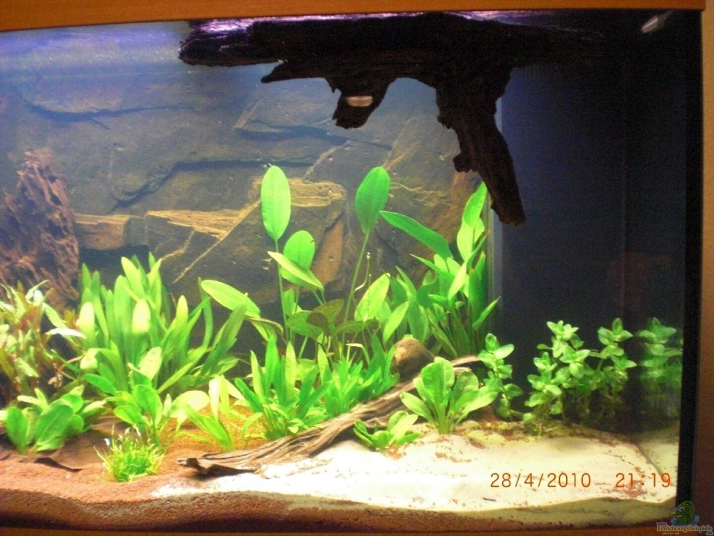 3D-Rückwand 5 Wurzeln, davon eine als Unterstand für die Skalare direkt an der Wasseroberfläche. 4 Höhlen aus Stein und Schiefer.