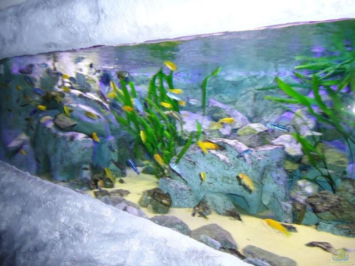 3500 Liter Mbuna Becken aus Floatglas / sto??verklebt mit den Abmessungen 300x150x80 und eingeklebtem ??berlaufschacht in der linken Ecke des Beckens (jedoch nicht sichtbar wegen Felswand). Dieses Becken befindet sich in einem an das Wohnzimmer angrenzenden Technikraum mit Wasseranschlüssen /Ablauf und steht auf einem gemauerten Sockel (bei Neubau berücksichtigt).Dort befindet sich ebenfalls das 600 Liter Filterbecken mit 5-Kammern. Der Technikraum verfügt über eine Aussparung in der Grö??e [...]