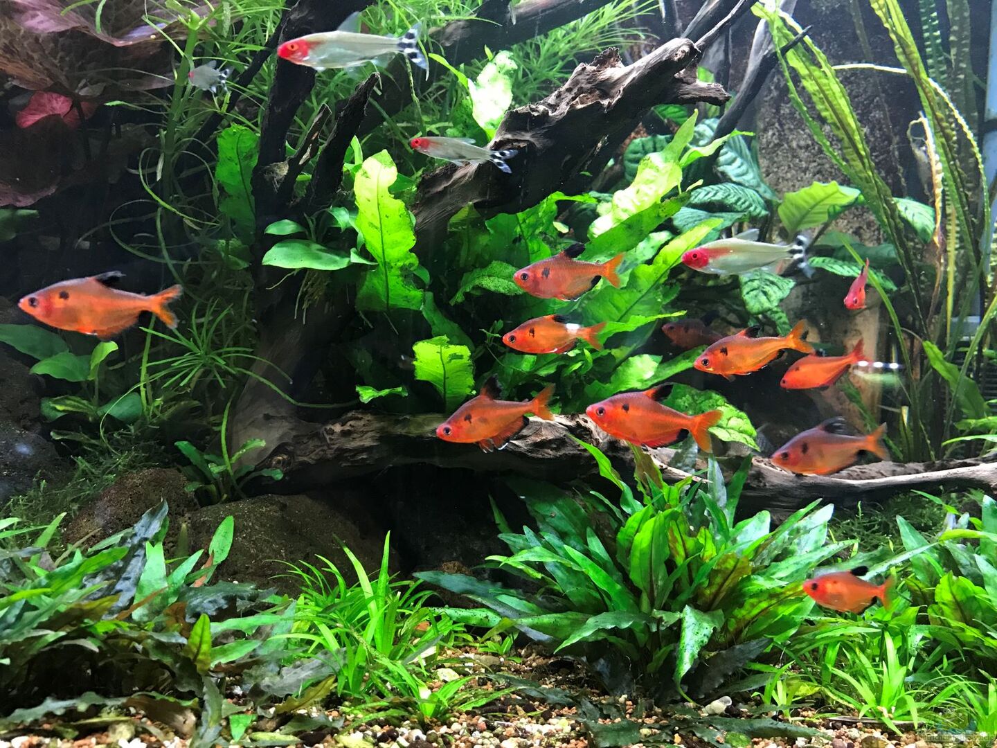 Ich versuche in diesem AQ Aquascaping mit den Bedüfnissen der Fische zu verquicken. Die Harmonie des Layouts ist genauso wichtig wie z.B. Unterstellmöglichkeiten für die Blutsalmler , sowie Rüchzugsmöglichkeiten für Garnele und Co.