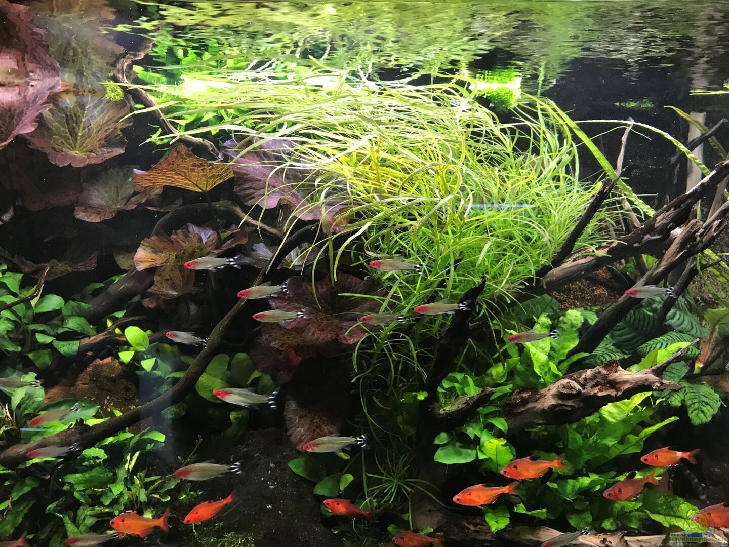Ich versuche in diesem AQ Aquascaping mit den Bedüfnissen der Fische zu verquicken. Die Harmonie des Layouts ist genauso wichtig wie z.B. Unterstellmöglichkeiten für die Blutsalmler , sowie Rüchzugsmöglichkeiten für Garnele und Co.