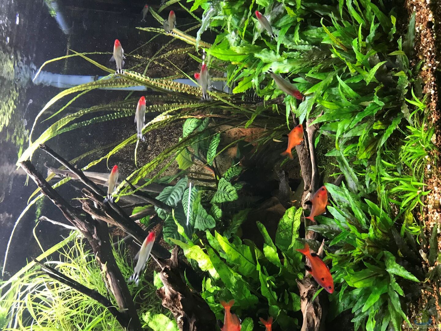 Ich versuche in diesem AQ Aquascaping mit den Bedüfnissen der Fische zu verquicken. Die Harmonie des Layouts ist genauso wichtig wie z.B. Unterstellmöglichkeiten für die Blutsalmler , sowie Rüchzugsmöglichkeiten für Garnele und Co.
