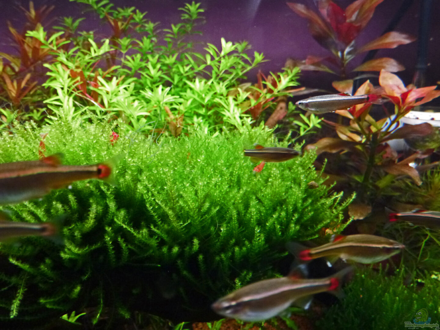 Sakura Champ Neocaridina heteropoda `Red` Anfangsbesatz 10 Stk., Nachwuchs mittlerweile ca. 15 Stk. Diese aus Japan stammende, sehr attraktive und beliebte Zwerggarnele kommt nicht in der Natur vor. Es gibt mittlerweile mehrere Zuchtvarianten. Die Männchen erreichen eine Länge von 2 cm, die Weibchen 2, 5 cm. Die Haltung und Zucht dieser Garnelen ist nicht schwer, da sie nach 4 - 6 Wochen Tragzeit ca. 20 - 40 fertig entwickelte Jungtiere entlassen. Man kann sie in Aquarien ab 12 l (besser [...]