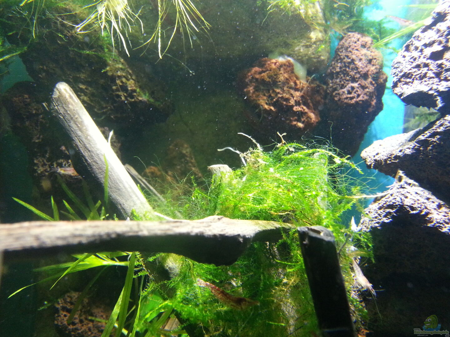 Leere Schneckenhäuser als Versteckmöglichkeiten für die Garnelen Dünne ??ste aus Eichenholz (die Rinde wurde vor der Einbringung in das Wasser entfernt) Eichen- und Seemandelbaumblätter