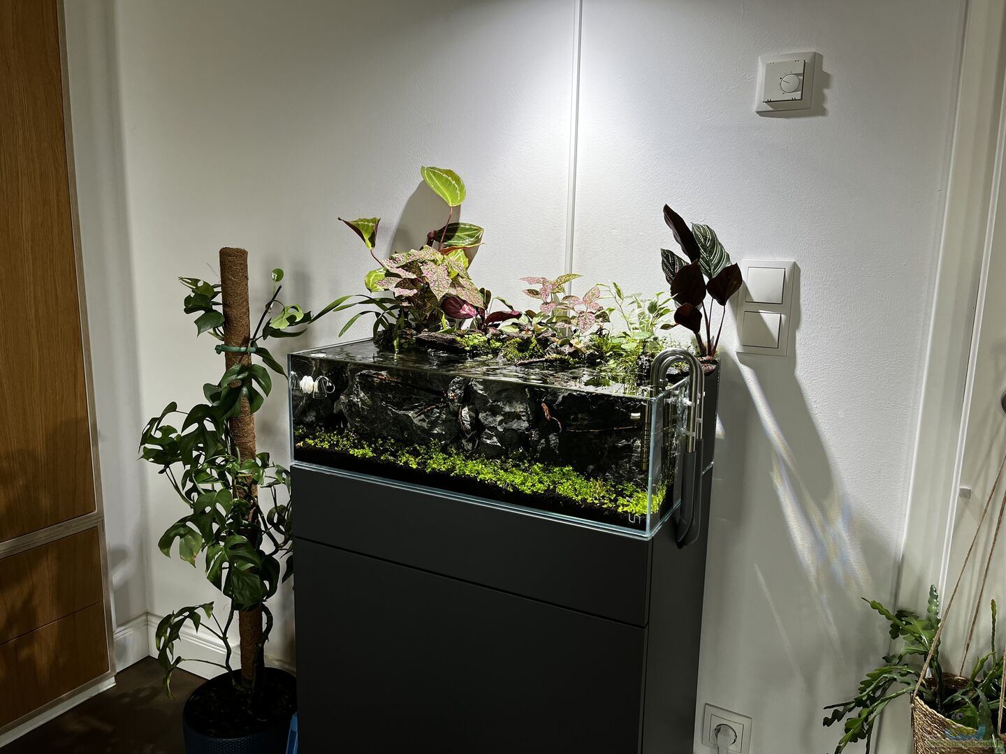 Ich bin gespannt, welche Pflanzen in dem dauerfeuchten Substrat gut zurecht kommen. Es ist ein kleines Experiment. Bisher scheint es allen Pflanzen jedoch ganz gut zu gehen. Dem Farn ist es wohl etwas zu hell, sodass ich diesen mehr am Rand, etwas schattiger platzieren werde. Emers: Buntnessel Begonia amphioxus Calathea lancifolia Calathea ornata Calathea Bicajoux Mamba Pink Calathea roseopicta "Rosy" Ficus spec. white Maranta L.Amabilis Mint Fittonia albivenis Pleurothallis [...]
