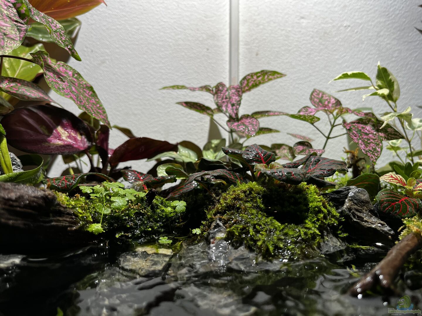 Ich bin gespannt, welche Pflanzen in dem dauerfeuchten Substrat gut zurecht kommen. Es ist ein kleines Experiment. Bisher scheint es allen Pflanzen jedoch ganz gut zu gehen. Dem Farn ist es wohl etwas zu hell, sodass ich diesen mehr am Rand, etwas schattiger platzieren werde. Emers: Buntnessel Begonia amphioxus Calathea lancifolia Calathea ornata Calathea Bicajoux Mamba Pink Calathea roseopicta "Rosy" Ficus spec. white Maranta L.Amabilis Mint Fittonia albivenis Pleurothallis [...]