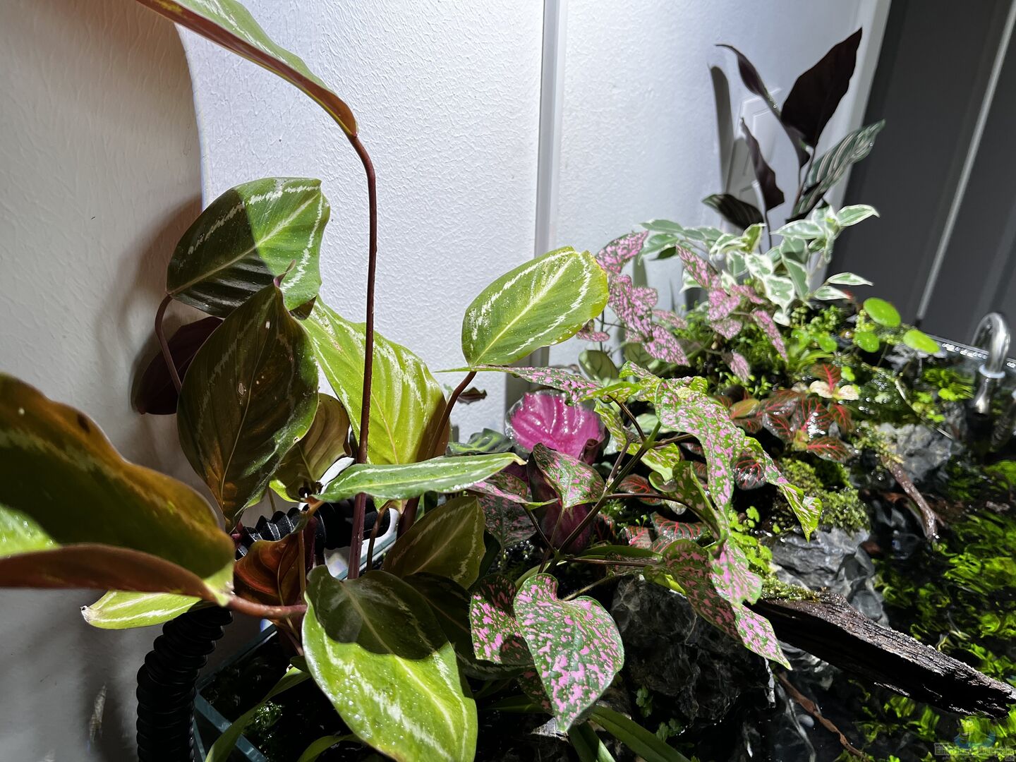 Ich bin gespannt, welche Pflanzen in dem dauerfeuchten Substrat gut zurecht kommen. Es ist ein kleines Experiment. Bisher scheint es allen Pflanzen jedoch ganz gut zu gehen. Dem Farn ist es wohl etwas zu hell, sodass ich diesen mehr am Rand, etwas schattiger platzieren werde. Emers: Buntnessel Begonia amphioxus Calathea lancifolia Calathea ornata Calathea Bicajoux Mamba Pink Calathea roseopicta "Rosy" Ficus spec. white Maranta L.Amabilis Mint Fittonia albivenis Pleurothallis [...]