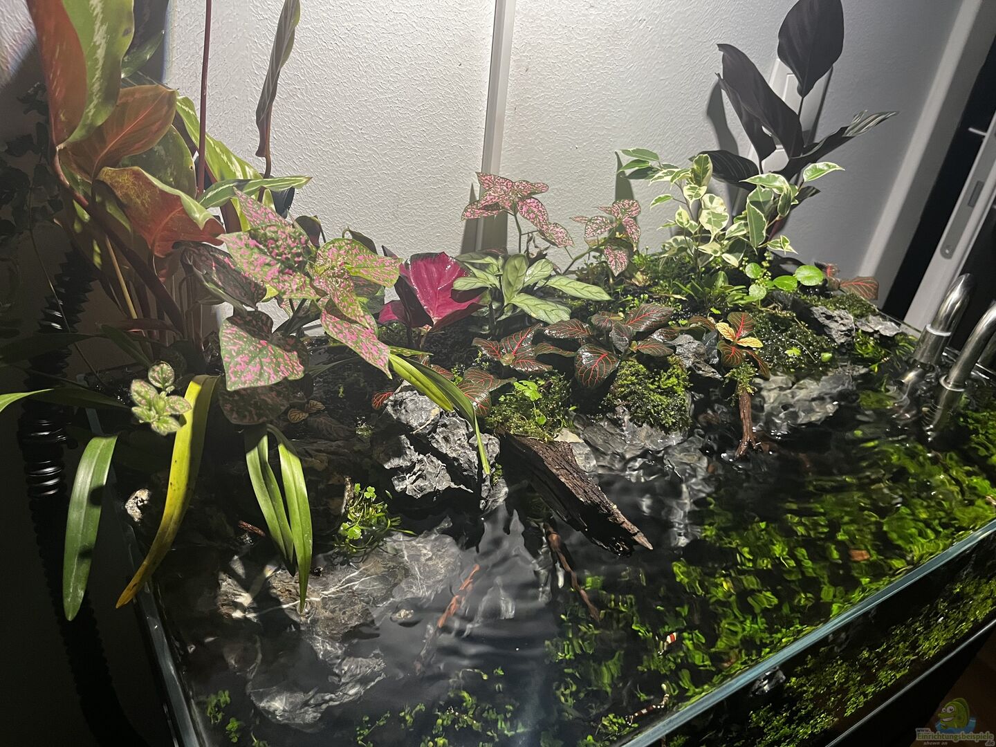 Ich bin gespannt, welche Pflanzen in dem dauerfeuchten Substrat gut zurecht kommen. Es ist ein kleines Experiment. Bisher scheint es allen Pflanzen jedoch ganz gut zu gehen. Dem Farn ist es wohl etwas zu hell, sodass ich diesen mehr am Rand, etwas schattiger platzieren werde. Emers: Buntnessel Begonia amphioxus Calathea lancifolia Calathea ornata Calathea Bicajoux Mamba Pink Calathea roseopicta "Rosy" Ficus spec. white Maranta L.Amabilis Mint Fittonia albivenis Pleurothallis [...]