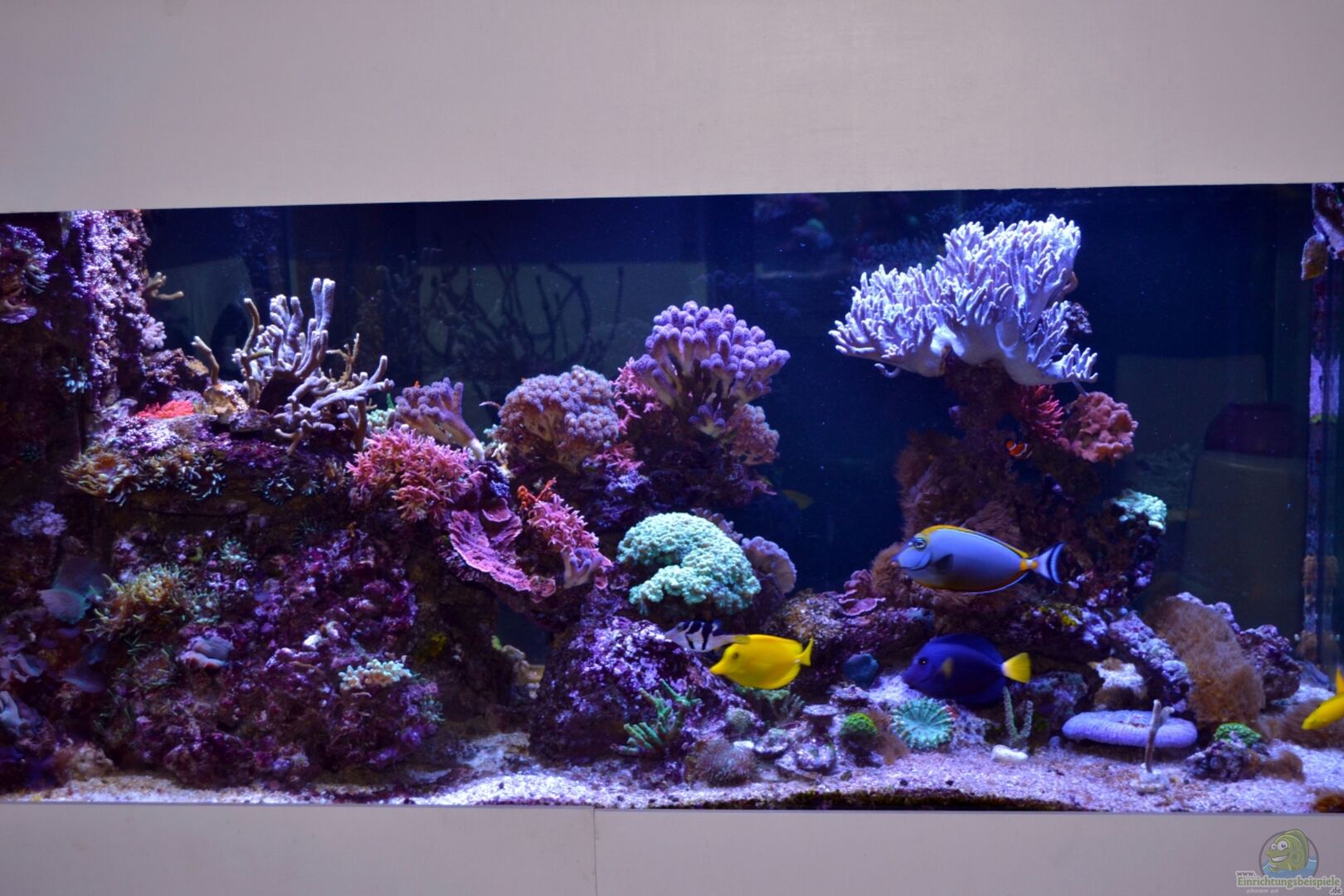 4 Bohrungen mit Ablaufschacht in der Mitte 40er Ablauf und 25er Zulauf Der Ablaufschacht hätte grö??er dimensioniert werden sollen, da 4000 l/h nicht so einfach 25cm passieren können. Das Becken selbst habe ich für 400 EUR anfertigen lassen. 60% Lebendgestein (LS) + 40% Keramikplatten ca. 45kg