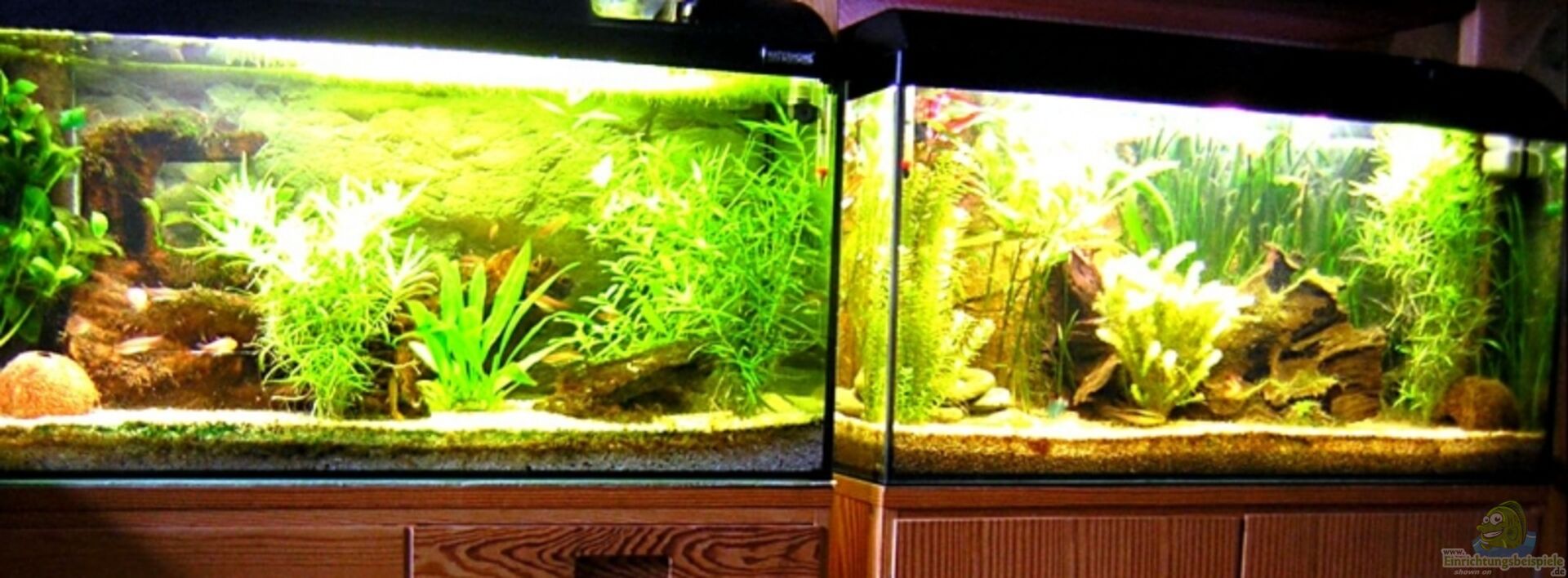 Hier finden Sie traumhaft schöne Aquarien, die mit Afrikanischen Schmetterlingsbuntbarschen (Anomalochromis thomasi) besetzt sind.