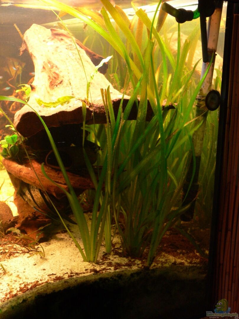 A21 Anubias barteri nana B70 Blyxa japonica E04 Echinodorus Dschungelstar Nr. 4 E100 Echinodorus bleheri H20 Hydrocotyle leucocephala M40 Microsorum pteropus SCH 40 Lemna minor V10 Vallisneria gigantea Gedüngt wird mit S7, E15 und V30 nach der Liste von Dennerle. Ich benutze aber nur die Hälfte der angegebenen Dosis!