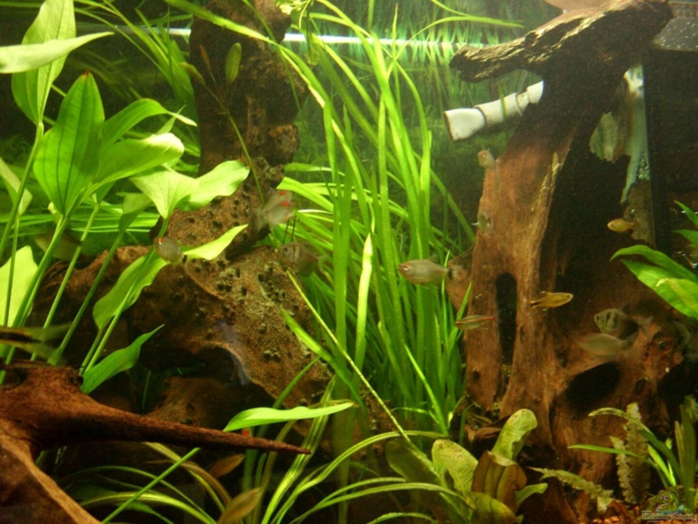 hinten rechts Vallisneria spiralis Leopard (sie wächst und wächst und......) bildet schöne Ableger, unzählige Cryptocoryne Ableger im linken und hinteren Beckenbereich als dichten Wald angelegt, drei Echinodorus bleheri vorne rechts vorm ??berlaufschacht, im mittleren Bereich drei Echinodorus-Zuchtformen deren genaue Bezeichnung ich nicht kenne, zwei kleine Anubias die aus einer sehr stark verkalkten Pflanze gerettet worden sind, an Wurzeln angebunden, in der Mitte des Beckens [...]