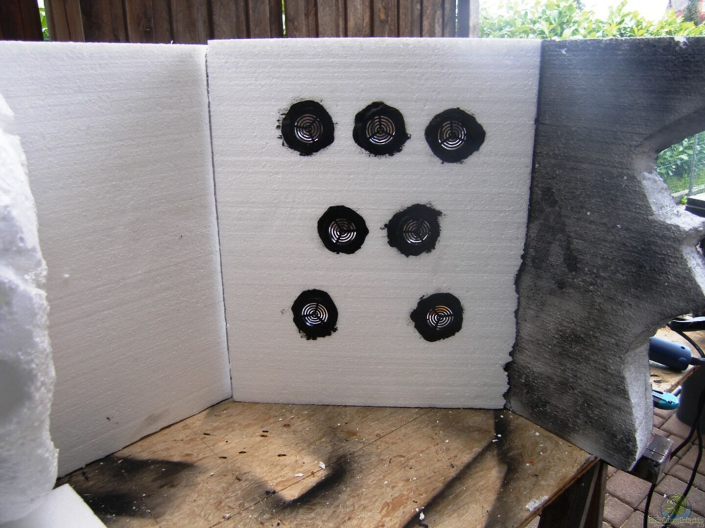 Der Bereich vor dem ??berlaufschacht wird so gestaltet, dass die Rückwand schräg davor verläuft. Hierdurch bildet sich ein Freiraum, wo die Technik untergebracht wird.