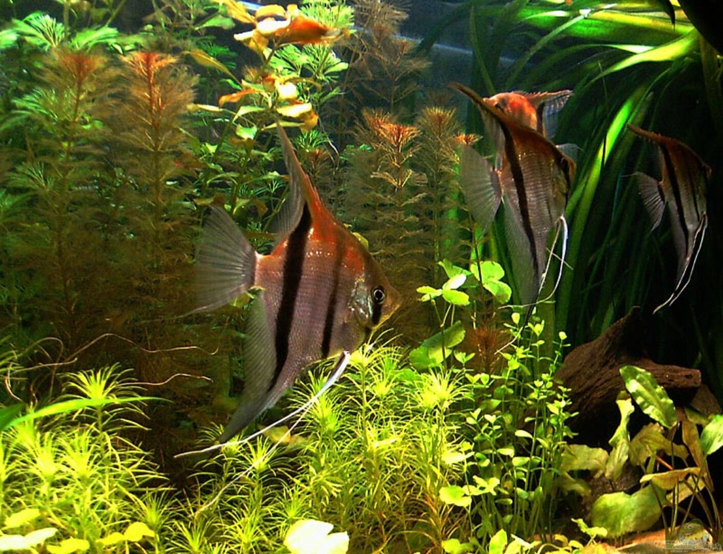 2x Ringelhandgarnele (+ xxx Nachwuchs) 6 Corydoras leucomelas (bekomme keine zum Aufstocken) 5xPterophyllum scalar (davon 1 Wildfarben klein und 4 gro??e Rotrücken)