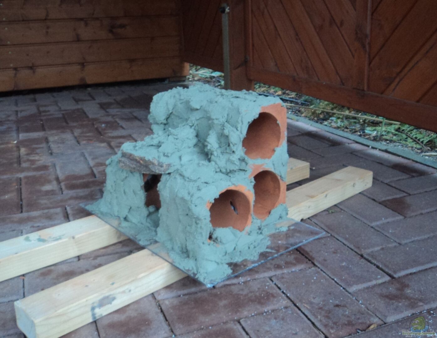 Das Becken hat an der Rückwand und an den beiden Seitenwänden eine Fotofolie ( Felsen ) Habe ich aus Platzgründen ausgewält Selbstgebauter Felsen aus Tonröhren diese stehen auf einer 1 mm dicken Plexiglasplatte. Somit kann der Felsen Problemlos rausgenommen werden. Die 4 Röhren sind mit Aquariumsilikon verklebt. Gestaltet habe ich den Felsen mit geeignetem Fliesenkleber Versiegelt wird das ganz dann mit Epoxidharz mit Farbzusatz schwarz , braun , hell grau & dunkel grau. 4 Feldsteine [...]
