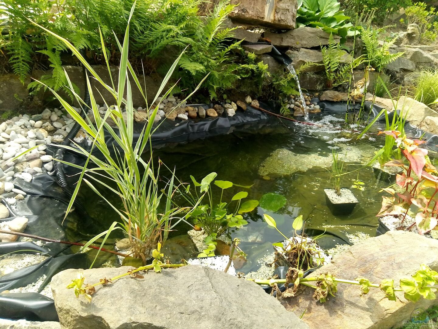 Folgende Pflanzen sind im Becken eingesetzt. Aquariumpflanzen Schwimmpflanze "Limnobium Laevigatum" Seerose "Nymphaea Attraction" Tannenwedel "Hippuris vulgaris" Korkenzieherbinse "Spiralis" "Juncus effusus" Buntgefärbte Houttuynia Chameleon "Houttuynia cordata" Gauklerblume "Mimulus luteus" Grote egelskop "Sparganium erectum Breitblättriger Rohrkolben "Typha latifolia" Buntes Glanzgras [...]