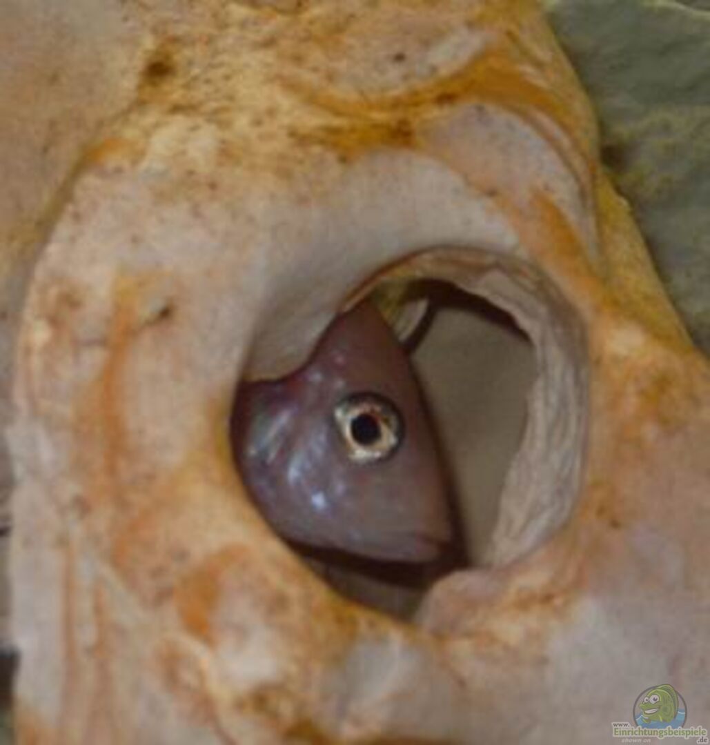 Künstliches Lochgestein in denen sich die Fische verstecken können. Weiterhin echtes Lochgestein und Flusskiesel.