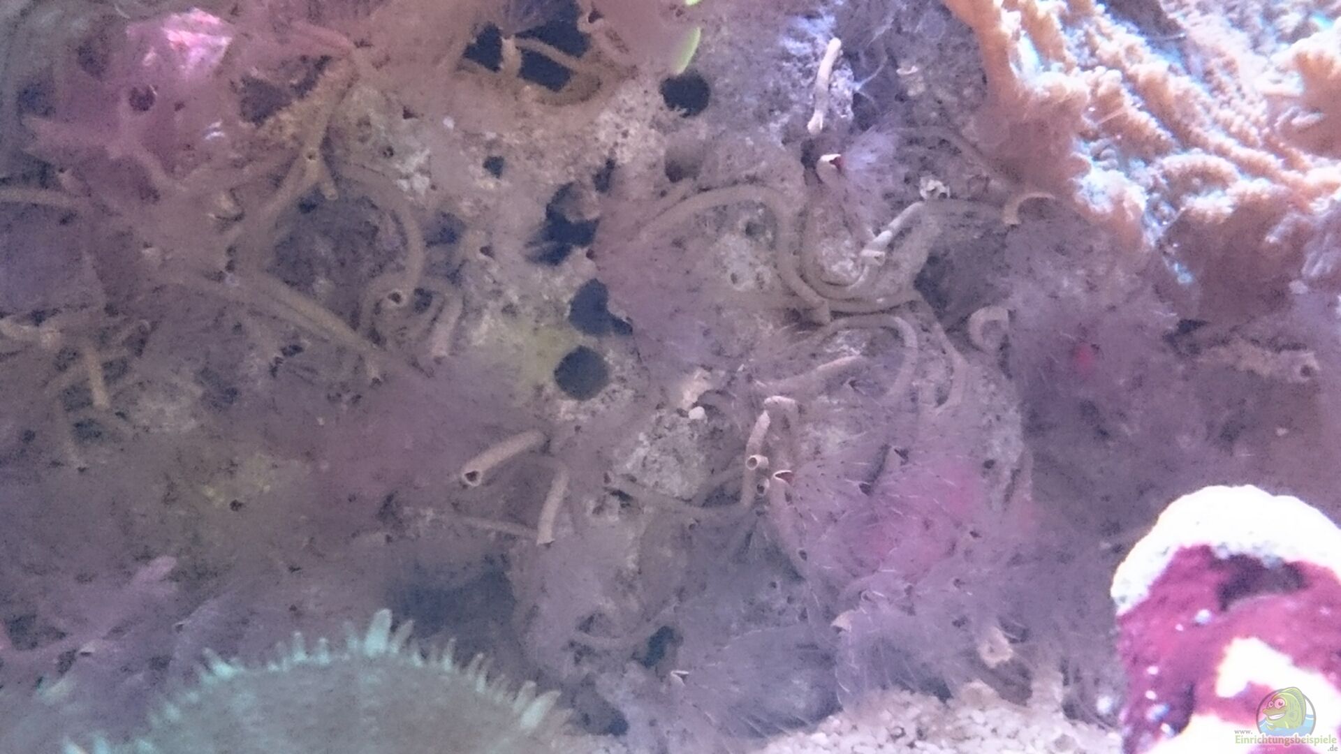 Fische 2 Amphiprion ocellaris 2 Pterapogon kauderni 1 Chrysiptera hemicyanea 1 Synchiropus splendidus Wirbellose Calcinus laevimanus Pilodius scabriculus Nerita polita Turbo tuberculosus Korallen/Anemonen Briareum hamrum Caryophyllia smithii Cribrinopsis crassa Discosoma sp. 12 Discosoma sp. 33 Entacmaea quadricolor Euphyllia paraglabrescens Merulina ampliata Montipora digitata 01 Montipora hodgsoni Pavona cactus Rhodactis sp. 04 Rhodactis sp. 07 Seriatopora [...]