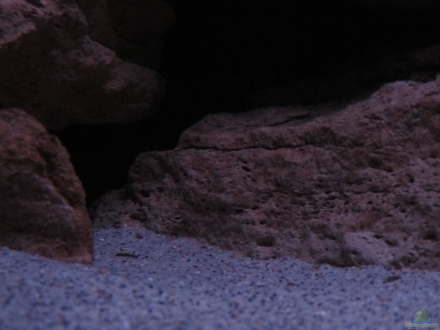 ca. 110 Kg Sandsteine aufgestapelt bis knapp unter die Wasseroberfläche. Dabei viele Höhlen und Ritzen geschaffen. Die Steine wurden aus einem Fundus von mehreren Tonnen so ausgewählt, (ich habe gerade im Garten Natursteinmauern gebaut) da?? sie in sich halten und nicht verklebt werden müssen. Es wurde auf den Beckengrund eine 10mm starke Styroporplatte und darüber eine 5mm starke Plexiglasscheibe aufgebracht. Darauf habe ich die erste Reihe Steine angeordnet. Es wurde auch eine Bodenheizung [...]