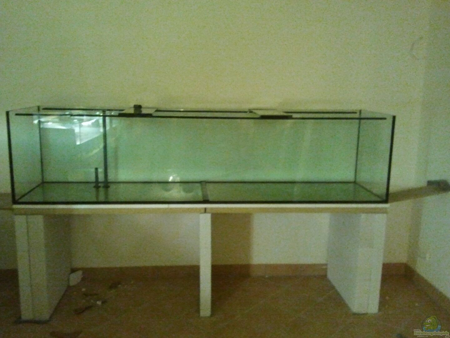 Das Aquarium ist stoßverklebt und hat innen und aussen eine Sicherheitsnaht.Es steht auf einer 5cm dicken Küchenarbeitsplatte und 9 y-tong Steinen, Auf der Arbeitsplatte habe ich eine 4 cm dicke Styrodorplatte gelegt, diese wird normalerweise unter den Estrich als wärme und Schallschutz verwendet.