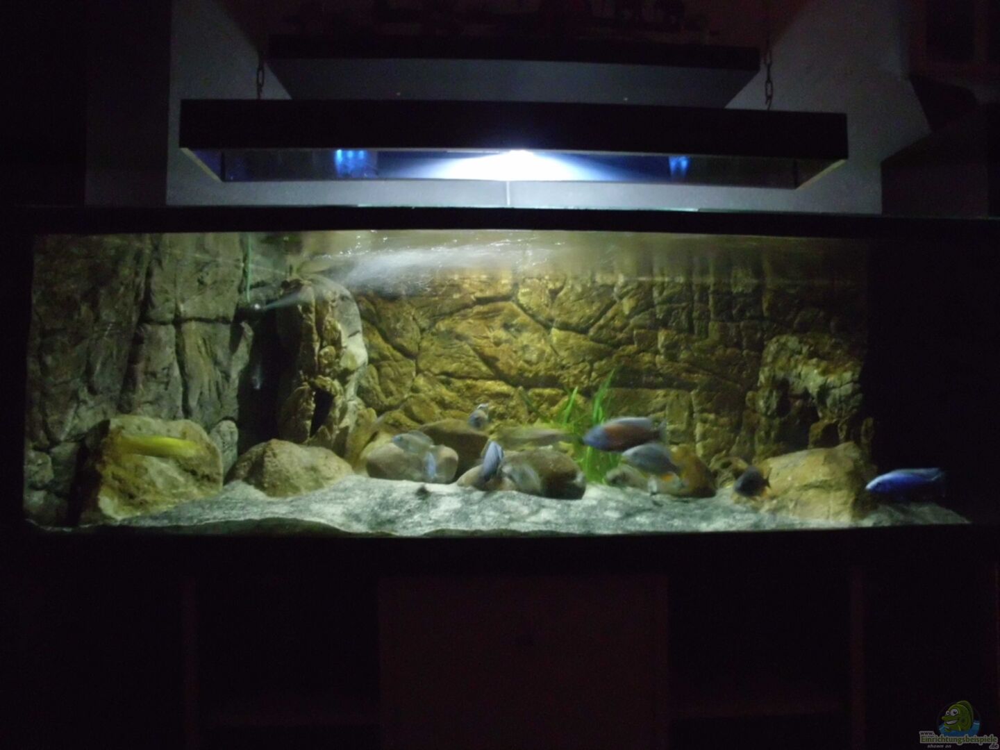 Becken ist von Aquarienbau Schwarz, Göttingen Ich habe als Abdeckung 2 Glasscheiben oben aufliegen Der Unterschrank ist ein kompletter Eigenbau aus 21mm starken Möbelbauplatten sowie 4 Stahlrohrtischbeinen.