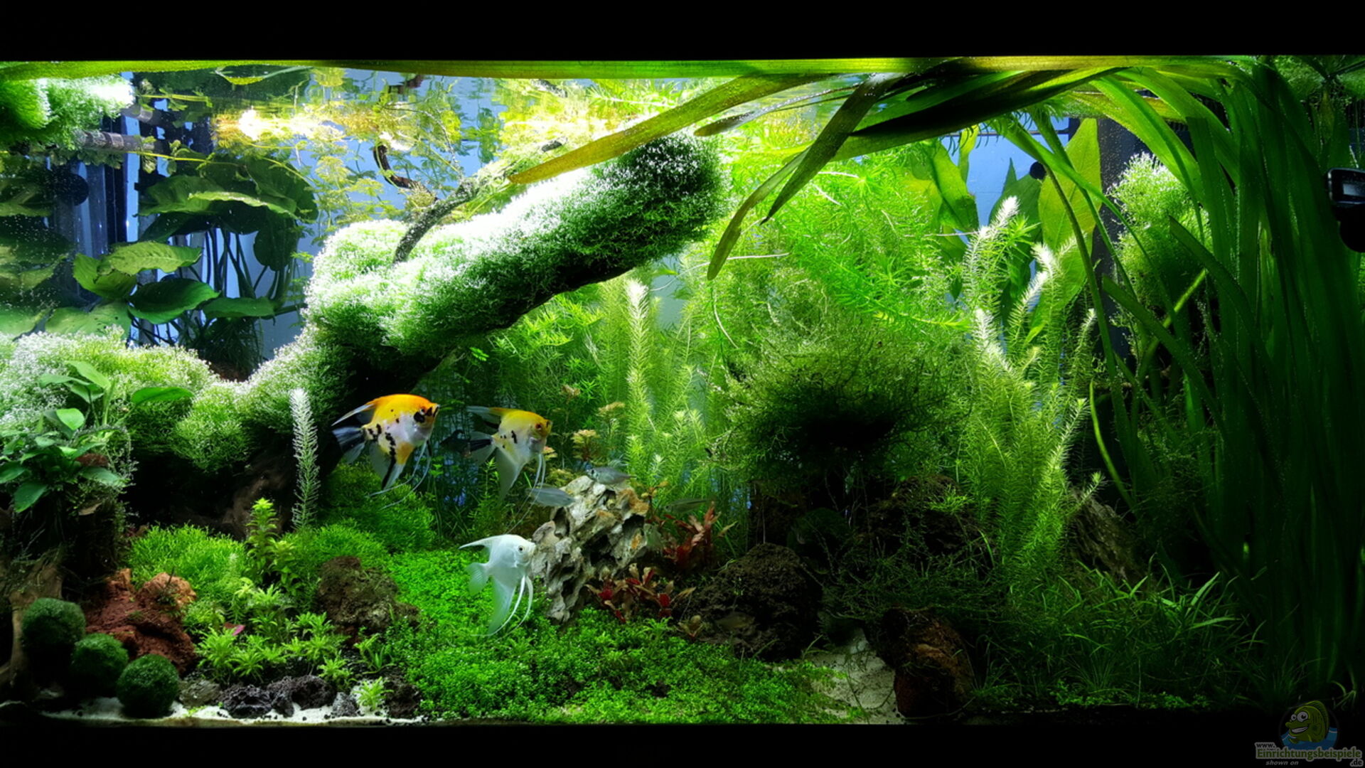 Das Hardscape wurde primär aus Islandlava/Drachenstein und Moorwood gestaltet. Die Lava wurde auf der linken Seite so angeordnet, dass diverse Versteckmöglichkeiten entstanden sind. Auf der rechten Hälfte des Beckens wurde eine kleine Schlucht aus der Lava gestaltet und darüber eine Wurzel platziert, damit auch hier ein Unterstand für meine Bewohner vorhanden ist. Durch den Einsatz von Sand, Schieferplatten und diversen Kleinkram, ist unter dem Innenfilter eine weitere Bruthöhle entstanden. [...]