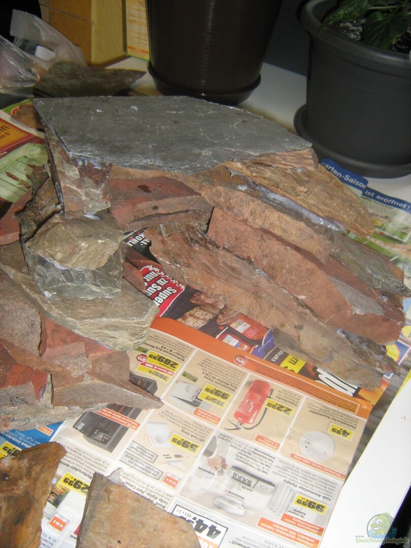 - ein kleiner Steinhaufen - eine grö??ere Steinhöhle mit Aufsatz für die Dornaugen und Tatia Perugia Die Steine wurden im Thüringer Schiefergebirge selbst gesammelt (falls jemand in die Nähe kommt und auch sammeln will die B281 Eisfeld - Neuhaus am Rennweg bietet sich da sehr gut an). Anschlie??end wurden sie Zuhause aussortiert und dabei genauer untersucht. Von den roten Steine sind viele rausgeflogen aber ein paar wenige hab ich riskiert mit einzusetzen. Nach über 1 Jahr kann ich nichts [...]