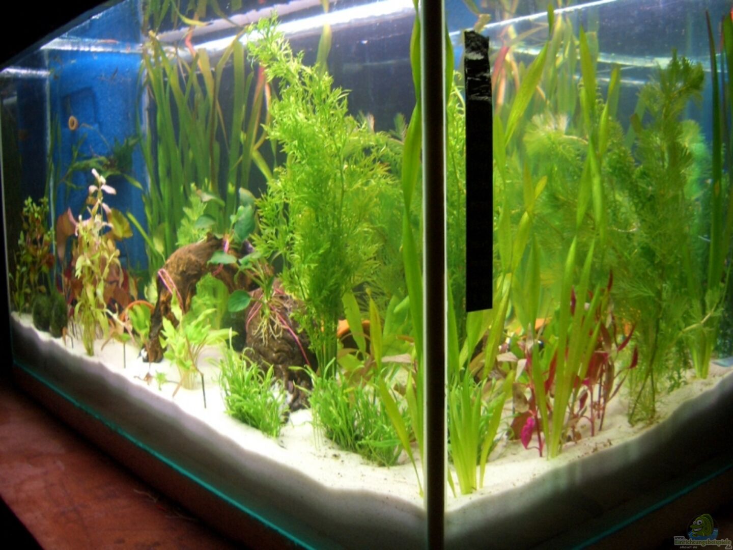 Schon älteres AQ mit Querstreben für Abdeckplatte Juwel Duolux-Abdeckung Glasstreifen 4x35 für Eck-Mattenfilter mit Silikon eingeklebt Seiten- und Rückwand mit Styropor (schwarz bemalt) abgedeckt, da das AQ in einer unbeheizten Werkstatt steht und sonst zuviel Wärme abgäbe...