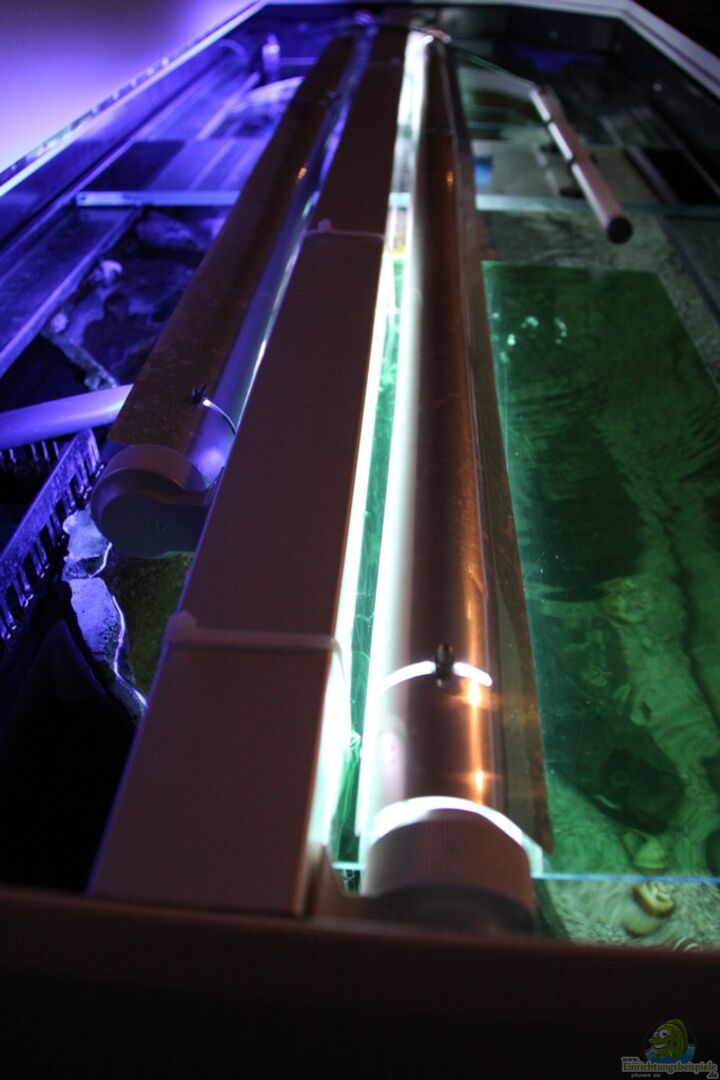 GHL Profilux Plus II GHL Leuchtbalken, getrennt dimmbar, 2 x 80 W GHL Profilux Simu-L Stab GHL Temperatursensor GHL STDL-4D Steckdosenleiste JUMO ph-Glaselektrode kompatibel mit Profilux Temperatur und pH-Wert werden an der Wasseroberfläche hinter der Rückwand gemessen. Tunze Turbelle nanostream 6055, 1000-5500 l/h, wird über Profilux Plus II gesteuert.Nachtreduzierung, sowie volle Leistung bei Gewitter. Schego Titan Heizer 300 W gesteuert über GHL STDL-4D Steckdosenleiste Hydor [...]