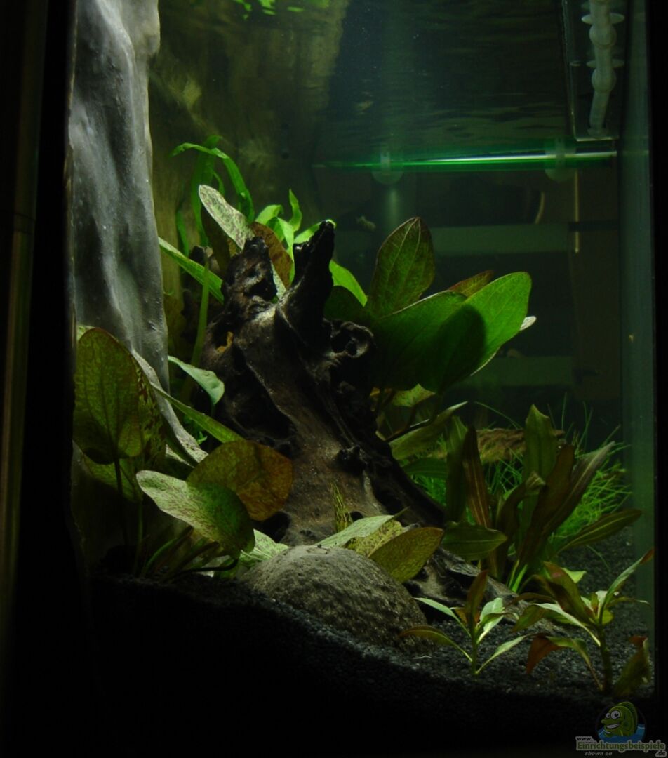 Wegen Wohnungsumräumaktion aufgrund von baldigem menschlichen Nachwuchses, musste das Becken umziehen und ist in dem Zuge auch gleich umgebaut worden. Rückwand Marke Eigenbau aus Styropor und Bauschaum. Beschichtet mit eingefärbtem Portlandzement und versiegelt mit Epoxitharz.