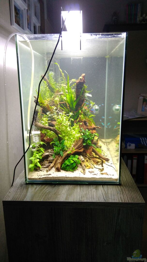Es handelt sich um ein SuperFishHome 80 Becken bei dem die komplette Plastikverkleidung entfernt wurde. Somit ist jetzt nur noch ein einfaches Floatglas Becken mit 80 Litern Inhalt :) Da mein ursprüngliches Scape völlig in die Hose ging (siehe mein anderes Becken Aquascape Missglückt), habe ich mich dazu entschlossen es nochmal völlig von vorne zu starten. Das war eine Menge Arbeit und zu allem ??berfluss musste ich das auch zweimal machen. Ich hatte mir eine schöne Wurzel besorgt, [...]