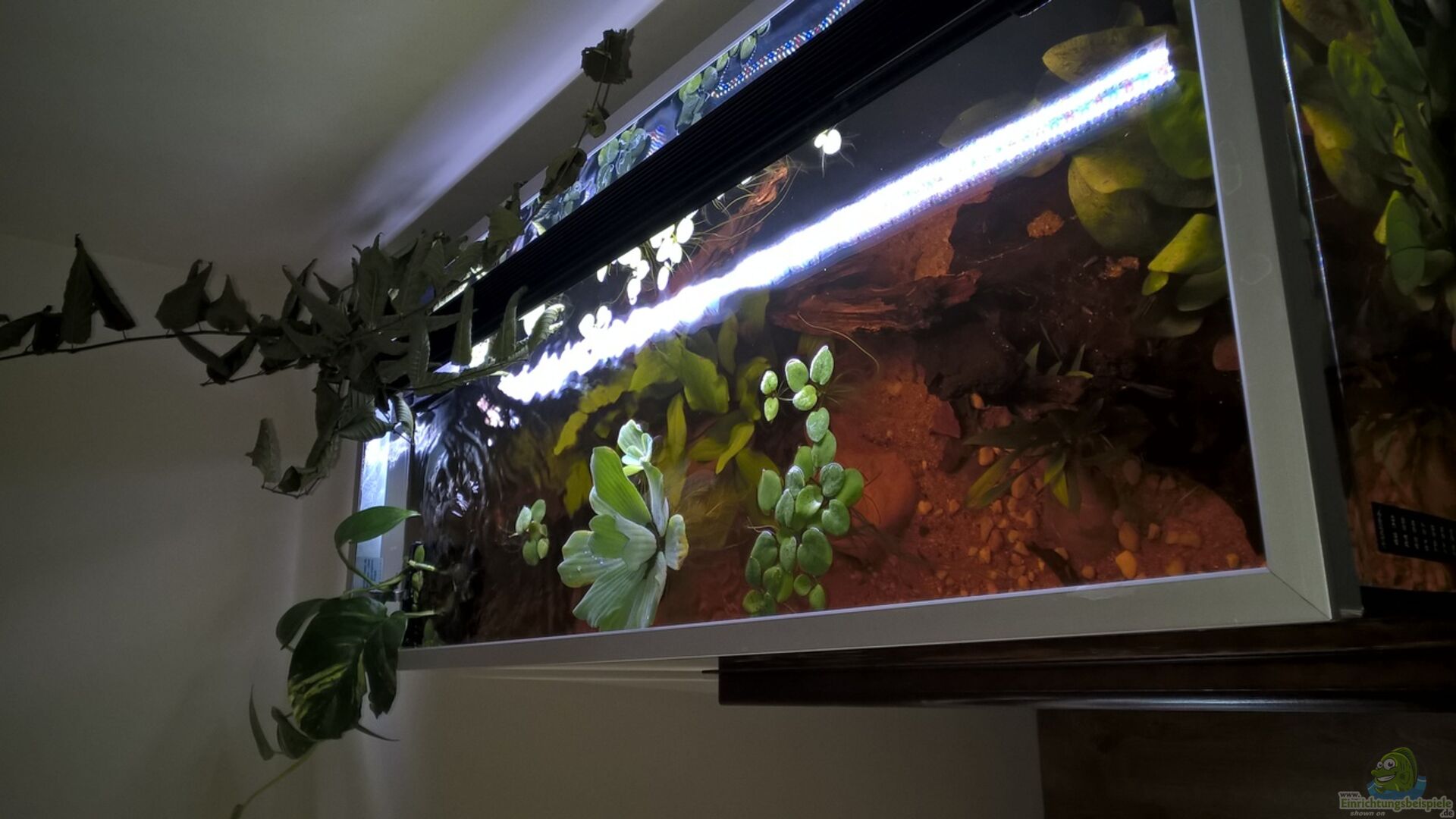 Das Becken ist ein Fluval Roma 200. Habe die werkseitig mit Silikon verklebte Abdeckung entfernt und den oberen Beckenrand mit eloxiertem Aluminium Profilen verblendet.