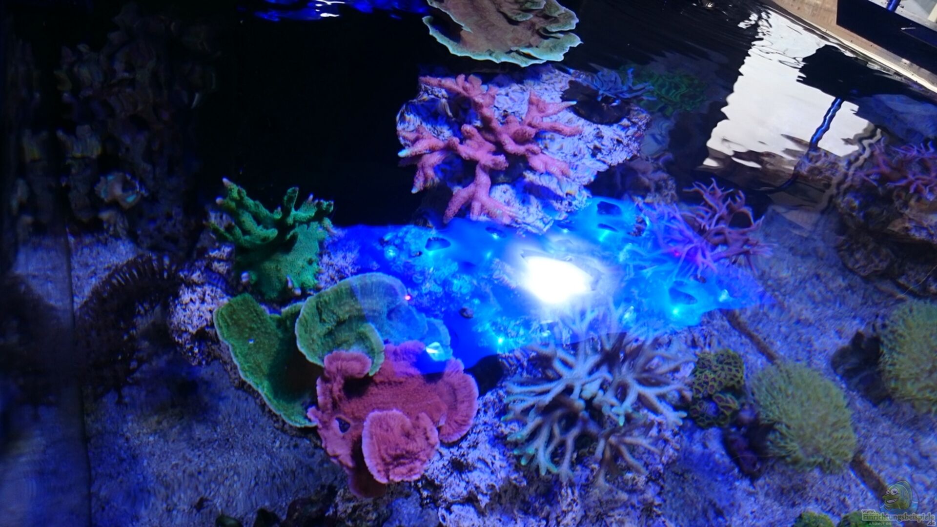 Ich habe das Becken anfänglich nur mit Riffkeramik und den Sangokai Basics gestartet. Die ersten Korallen zogen nach einigen Tagen ein und die meisten SPS nach zwei Wochen. Nach und nach habe ich zur Erweiterung der Biodiversität und für mehr Stellplatz noch etwa 4KG Lebendgestein eingesetzt.