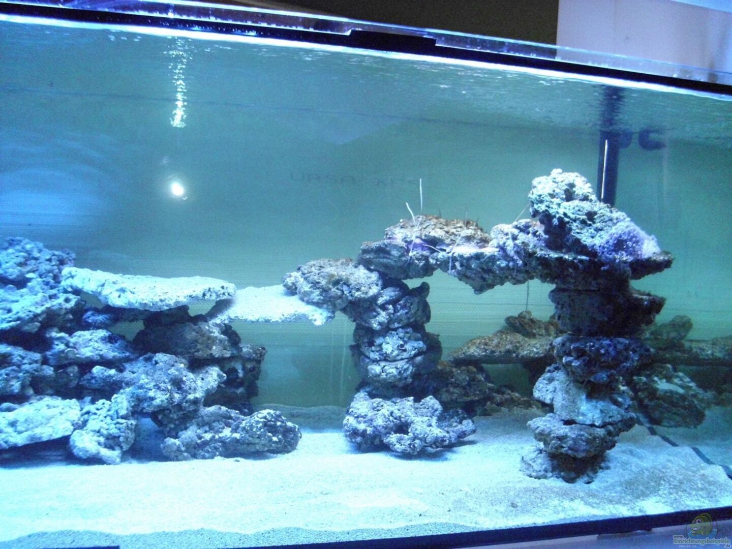 Sto??verklebt, 15er Glas 50er Ablaufrohr und 20er Zulauf Im Zimmer kann man nur die Frontscheibe vom Becken sehen. Die anderen Seiten sind ausserhalb vom Zimmer und mit Styrodur abgedeckt, kann man bei Bedarf aber abmachen, z.B. wenn man neugierig ist was im Riff so los ist :)