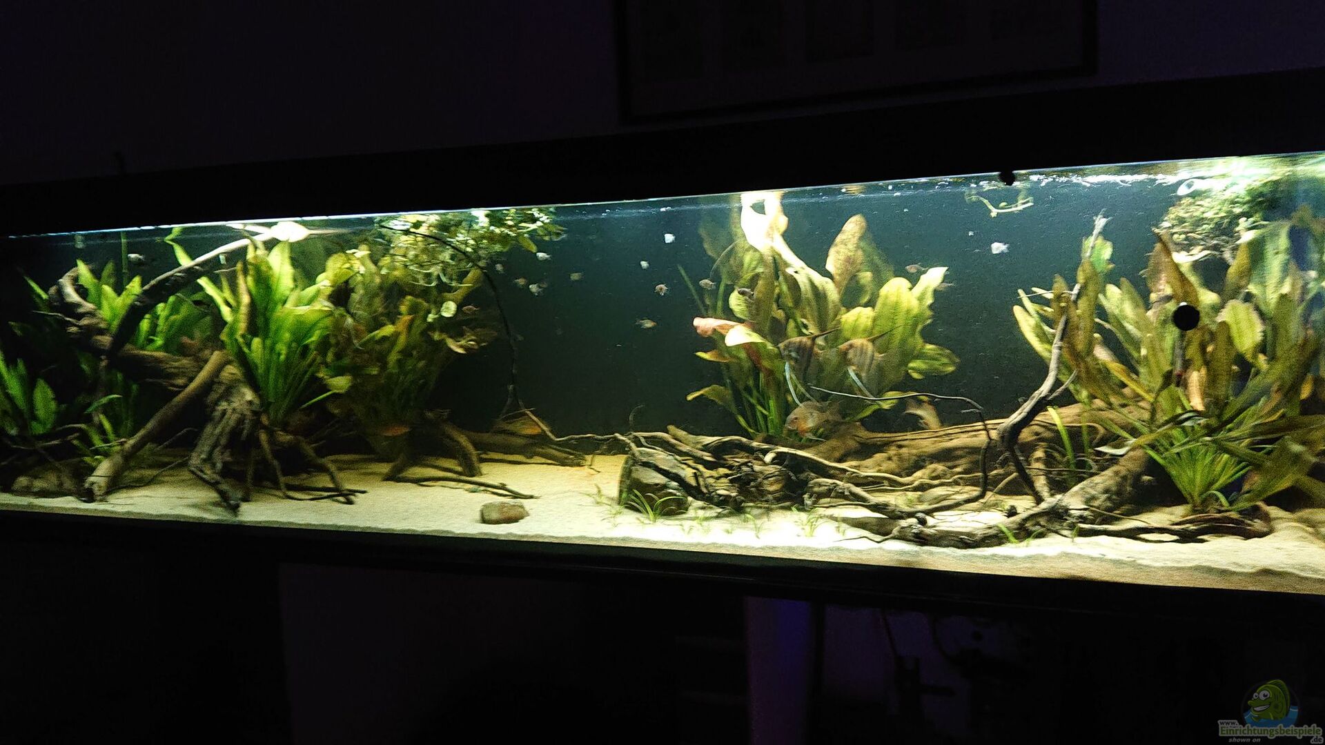 FRONT und SEITENSCHEIBE ist Weissglas Das Becken würde vom Aquariumbauer meines Vertrauens ;-)Vor Ort verklebt 3 Kammerinnenfilter Schwarz 2 Längsstreben 2 Querstreben Bodenplatte 2 geteilt Boden mit Rahmen ringsrum verstärkt. Aquarium wird über Zentralheizung und Magnetventil beheizt