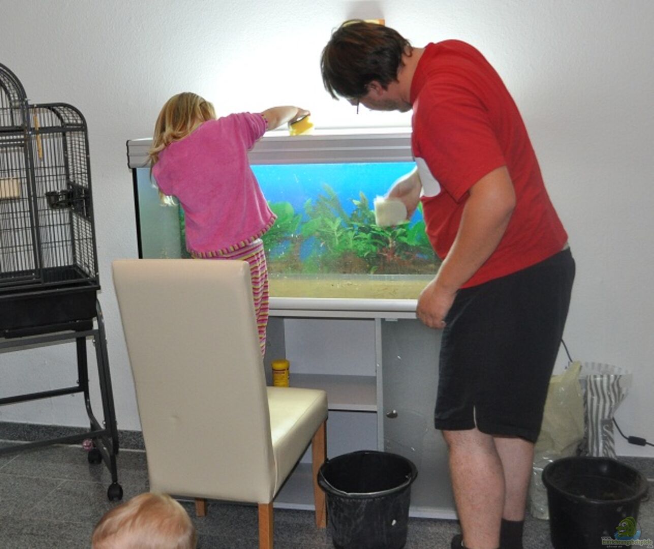 Vor dem Aufbau muss das Becken noch gereinigt werden, Marie hilft fleißig mit. von Patrick Scheffer (2)