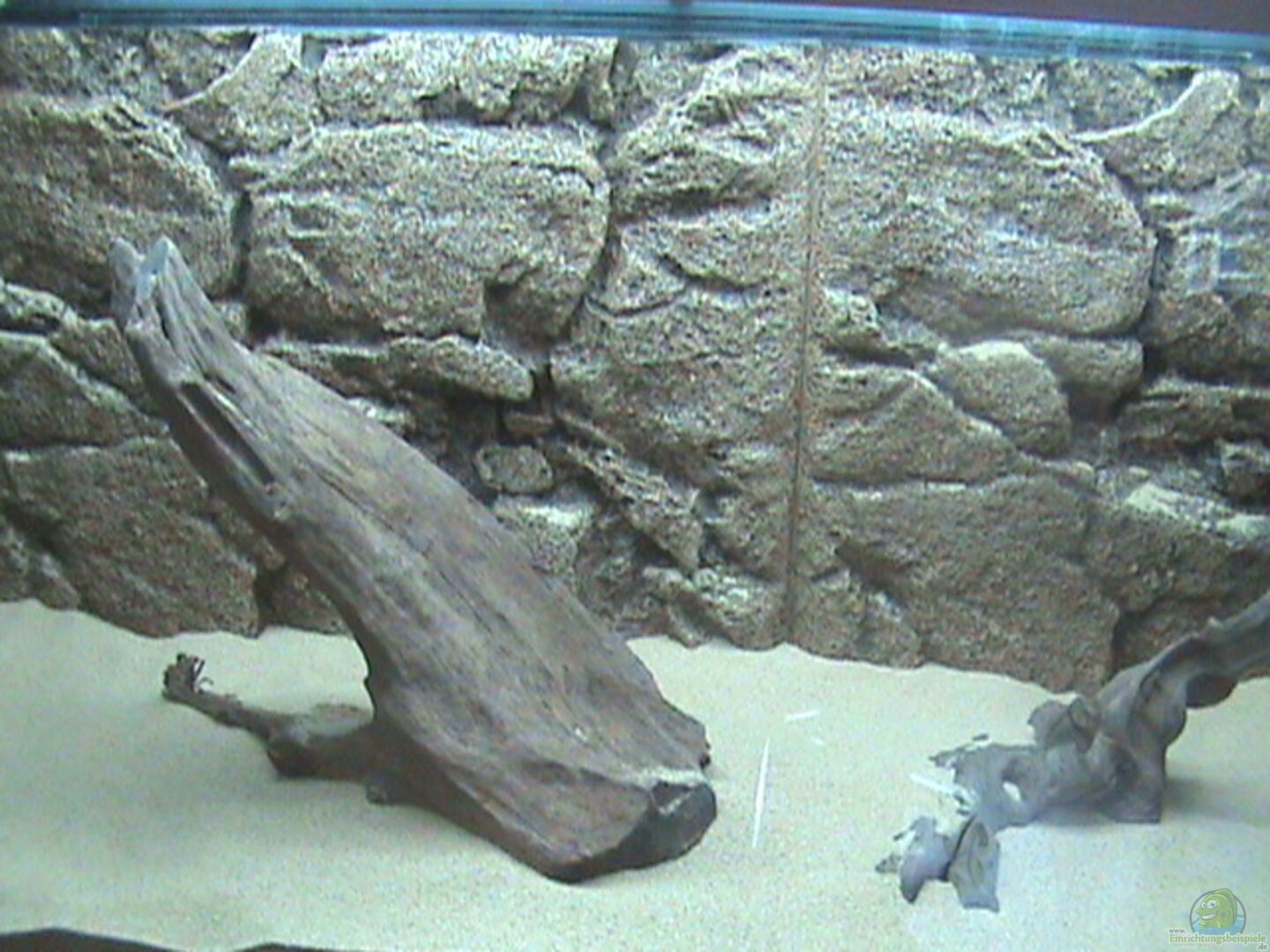 Das Aquarium wurde am 26.07.08 von den ersten Fischen besiedelt. Es ist also noch sehr jung. Zwei Bohrungen auf der Rückseite für Filter und Heizung. Spezielle Ziele: -Kein oder nur schwacher Algenwuchs -Keine Schnecken -Die Fische fühlen sich wohl -Naturnahe Bepflanzung und Dekoration Eigentlich soll es ein Südamerika-Aquarium sein, aber solange die siamesische Rüsselbarbe noch drinnen bleibt, geht das halt nicht.