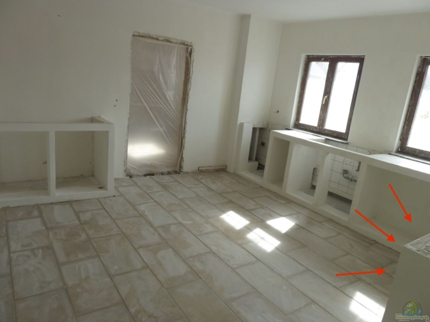 Vorbau für das Becken in der Küche. Ytong, gemauert, verputzt und gekalkt. von Lina L. (10)