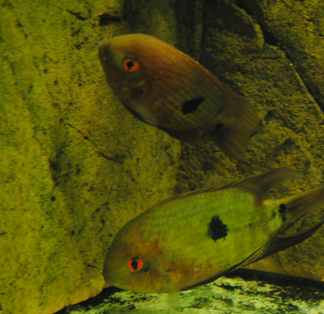 - 4 Geophagus megasema (wahrscheinlich 2/2; 17-24 cm) Quelle: ajot (geophagus.org) Erstbeschreibung:Heckel, 1840 wissenschaftlicher Name:Geophagus magasema Namensbedeutung:´megasema´ = mit gro??en Fleck weitere Bezeichnungen:- Herkunft/Fundorte:Rio Gaupore, Rio Urupa, Rio San Martin typische Merkmale:gro??er, runder Lateralfleck, ohne Kiemendeckelstrich Grö??e:bis ca. 23cm Fortpflanzung:larvophile Maulbrüter Bemerkungen:aquaristisch wenig bekannt. Eigene Beobachtungen: [...]
