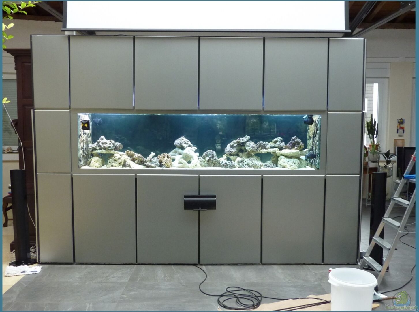 Das Aquarium wird als Raumtrenner eingesetzt Bypass-Tank mit integrierter Wasserwechselfunktion (Volumen Netto: 200 L) Im Tank befindet sich eine Tunze Umwelzpumpe. Eingeplant sind zwei Niveauschwimmer (Min. Max) für einen automatischen Wasserwechsel