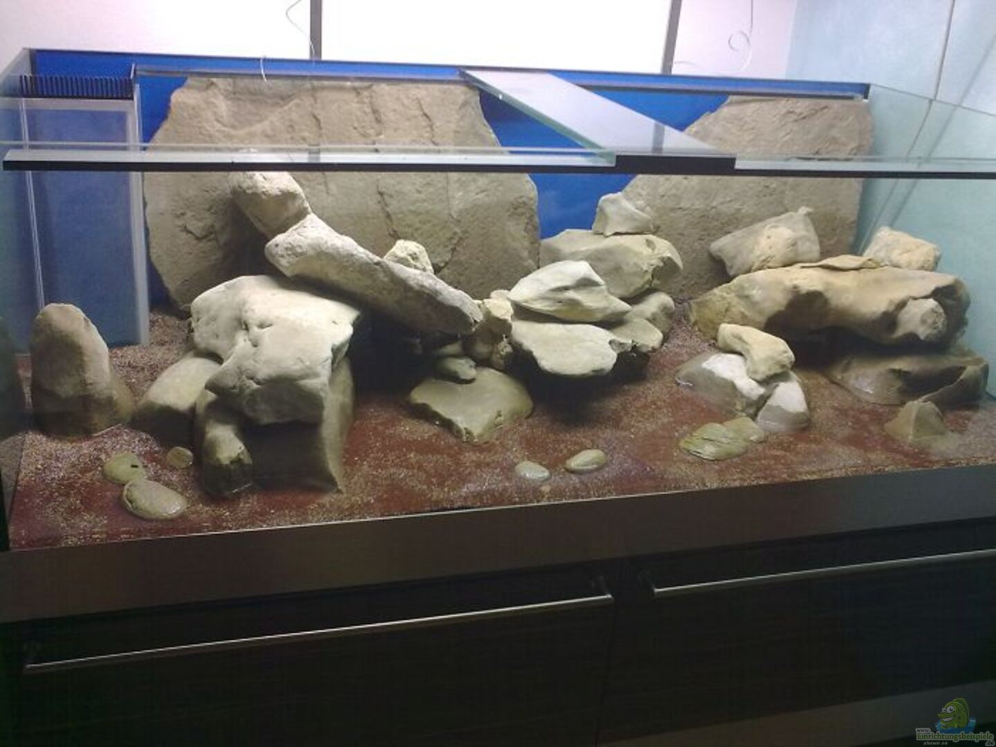4/5 der Rückwand mit Sandsteinplatten verkleidet. Dicke ca. 2-5 cm. Natürlich geformte Sandsteine aus der Umgebung. Ca. 50 kg.