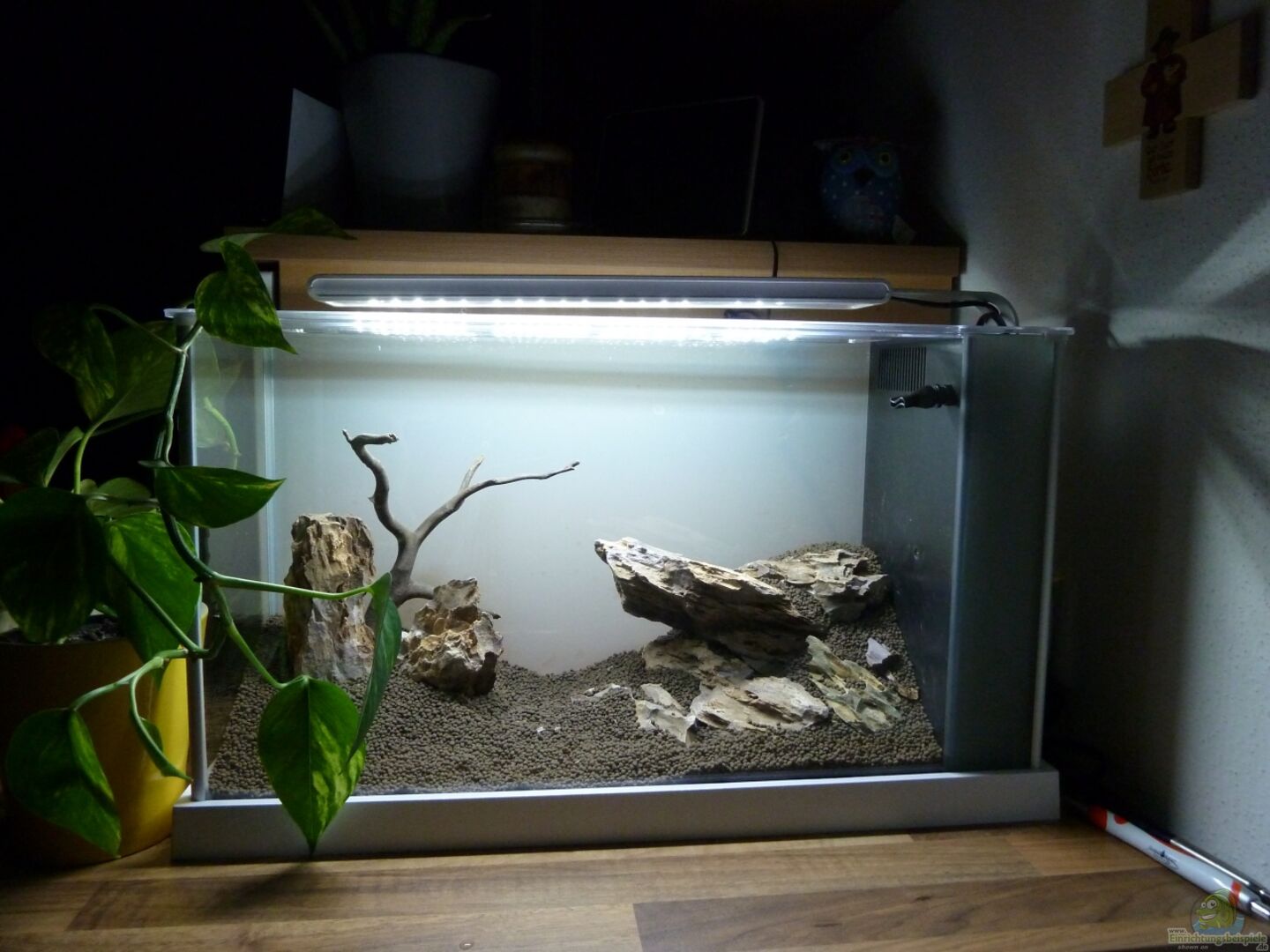 Fluval Spec 5 in wei?? Filter befindet sich abgetrennt vom Becken "unsichtbar" auf der rechten Seite.