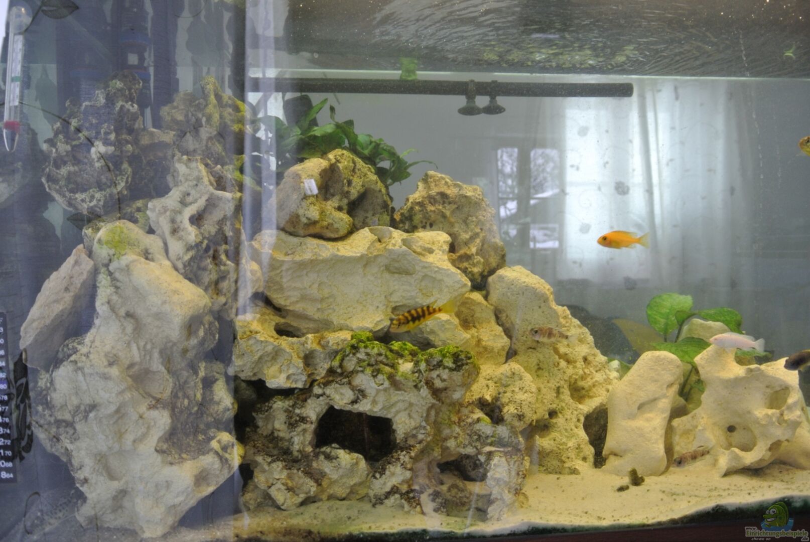 Das Aquarium dient als Raumteiler, in der Früh bekommt es ein wenig Sonnenlicht ab.