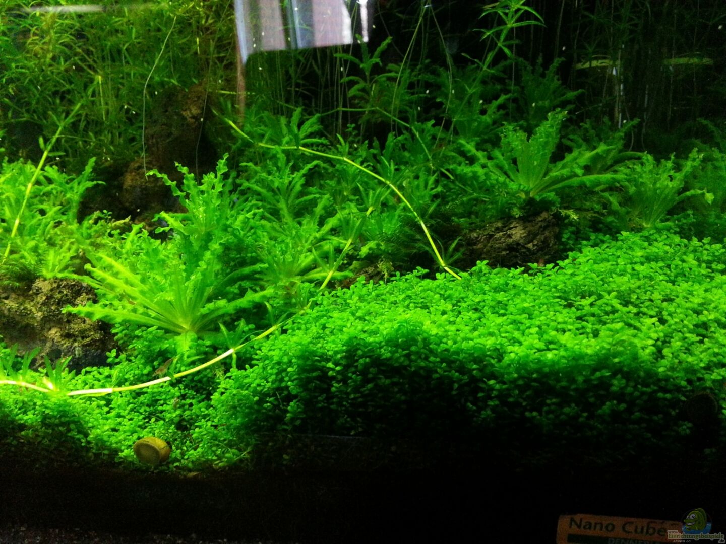 Die Vorrichtung des Hamburgermattenfilter ist mit Schieferstückchen beklebt. Die selbstgebaute Schieferrückwand ist ebenfalls fest eingeklebt. Die Seiten der Rückwand sind nicht komplett geschlossen. So haben die Garnelen die möglichkeit sich dahinter zu verstecken. An dieser Stelle gab es schon interessante Beobachtungen. Mittlerweile sucht hat auch die Wasserpest die Lücken entdeckt und wächst fröhlich dahinter weiter.