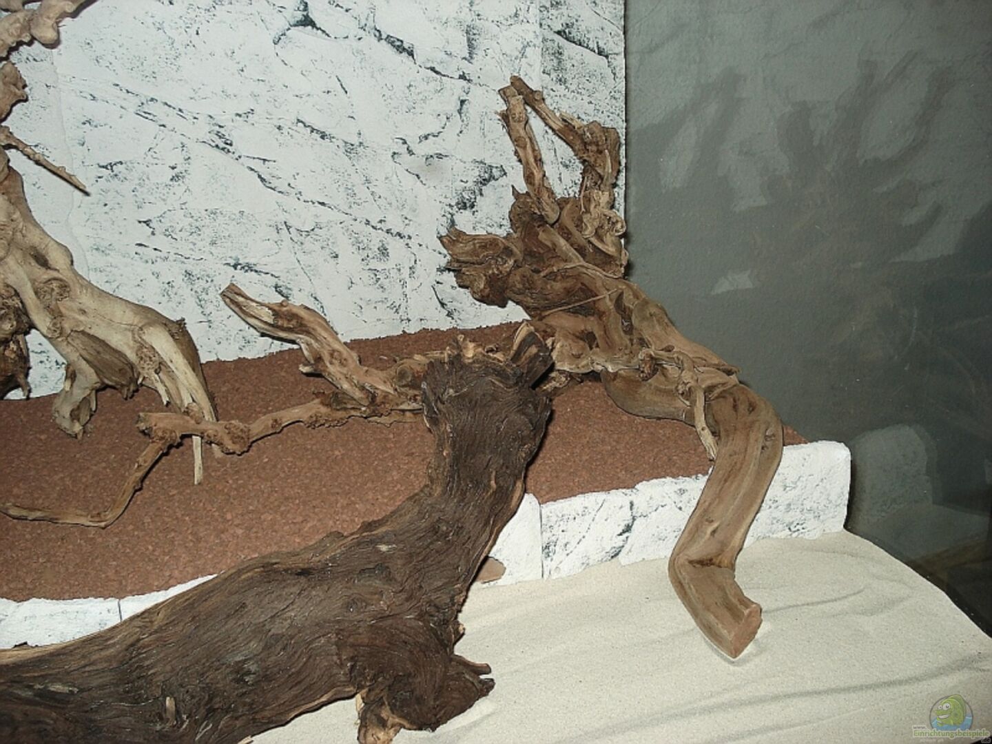 1x Mopaniwurzel Gro?? 2x Vulkanwurzel gro?? 15 kg Rienna Steine Back to Natur Rückwand Terrasse vorne Sand hinten Kies 3x Welshöhle 6x Mooskugel als Teppich aufgeschnitten 2x mit Javamoos bewachsene Kokosschale