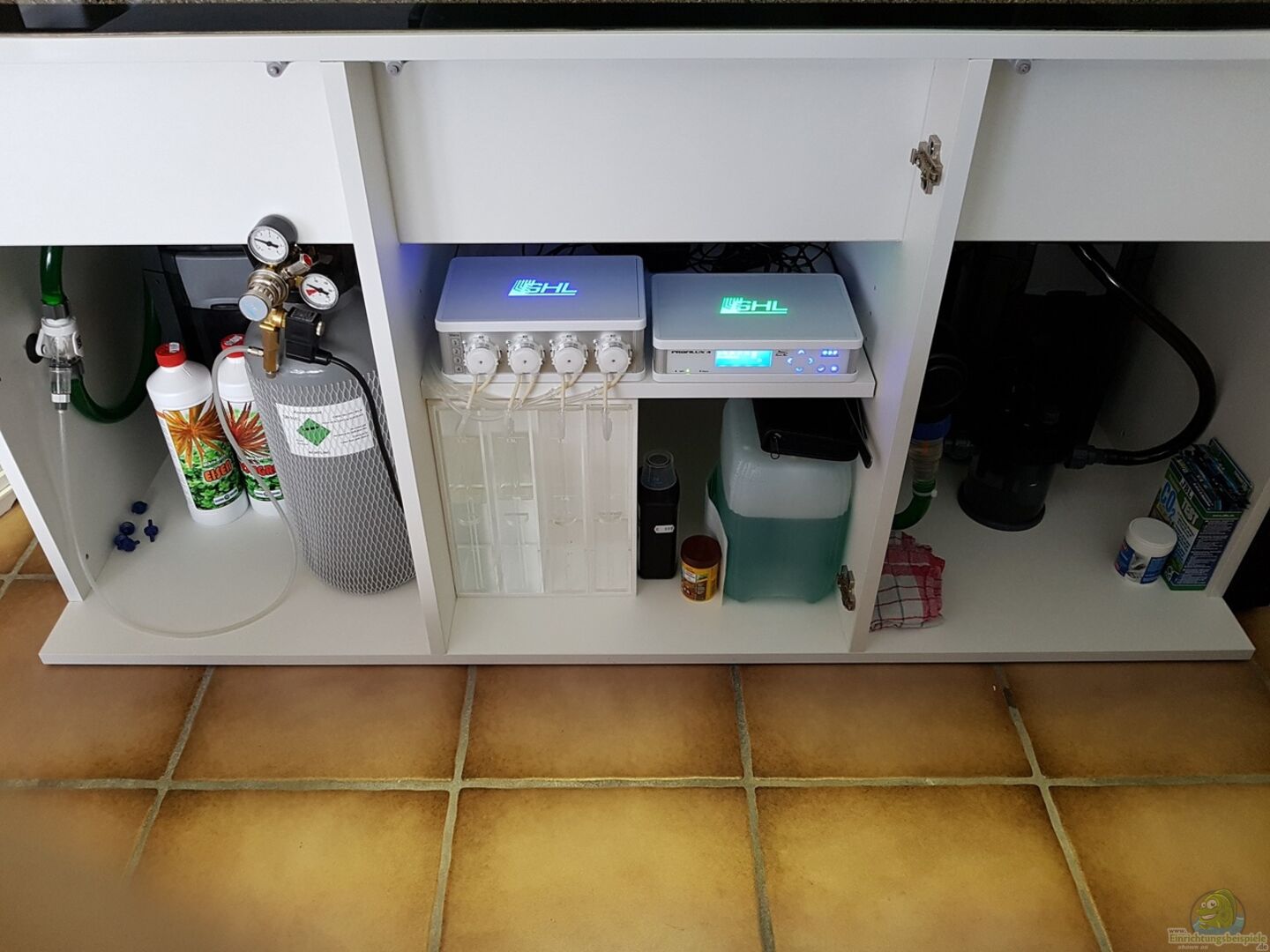 1x JBL AquaCristal UV-C 18 Watt 1x SCHEGO Titanheizer 600 Watt 1x Düngeanlage Comfort-Line CO2 Professional 6Kg Pflasche 1x GHL ProfiLux 4 Wei?? 1x GHL Doser 2 SA 4fach 1x GHL Redox Electrode 1x GHL Temp Sensor 1x GHL pH Electrode 1x Dupla Dosing Containers DB4 mit 4x 1, 5L