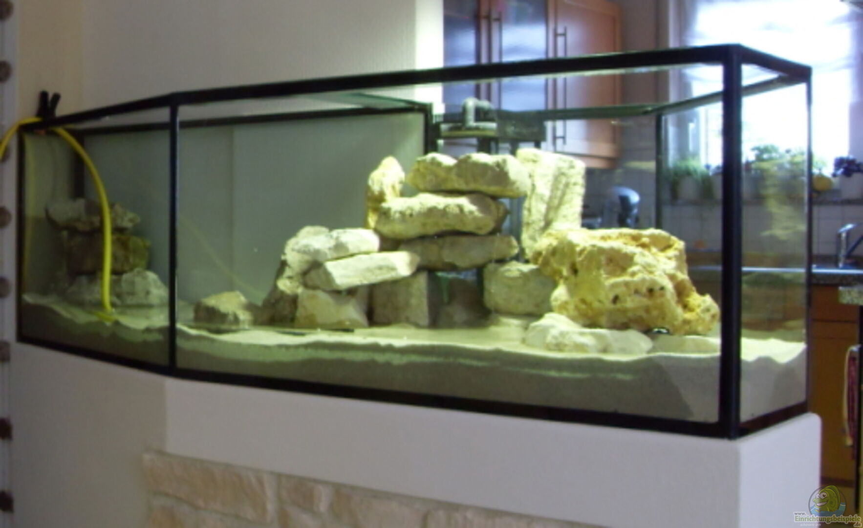 ein etwas anderes Aquarium ( Form ) Sonderanfertigung vom Aquarienbauer in der Nähe . Die Scheiben sind aus 12mm Floatglas und Wulstverklebt ( Nähte innen mit Glasstreifen abgedeckt ). Der Unterschrank ist ein Eigenbau aus Spanplatten und Ytong-Steinen , verkleidet mit Gipsplatten (grün) , nach dem verspachteln mit Streichputz gestrichen und zum Teil mit Antik-Bruchsteinen verkleidet. Die Beckenform hat sich nach langem planen so ergeben und hat sich gut in die Wohnung eingefügt . ===================================================== [...]