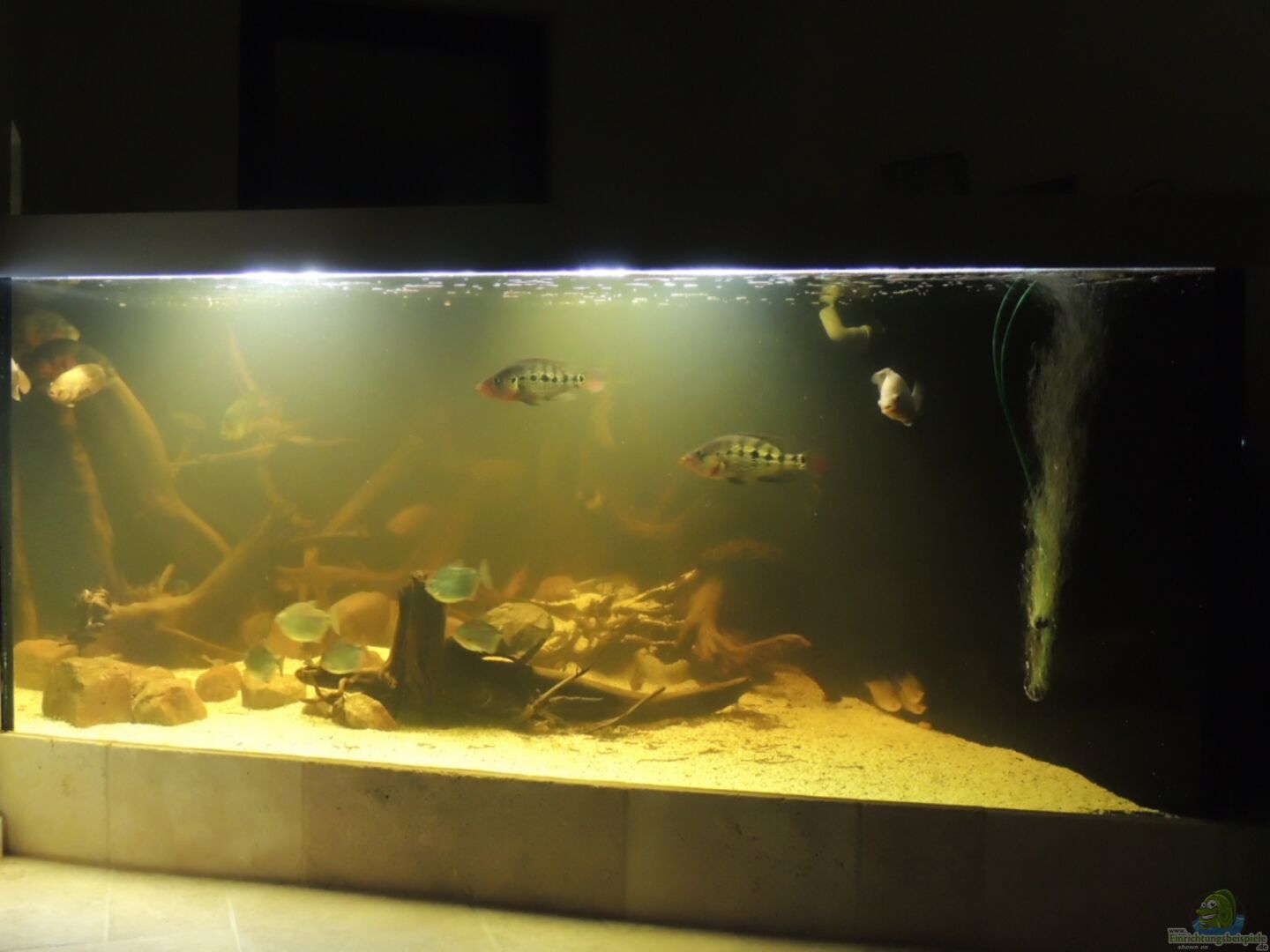 in der dusche habe ich fenster eingebaut mit blick ins becken, finden die barsche cool wenn jemand duscht ;-) scheiben sind 1m hoch, glasstärke 19mm, längste seite ist etwa 2, 60m , frontscheibe 2, 40m