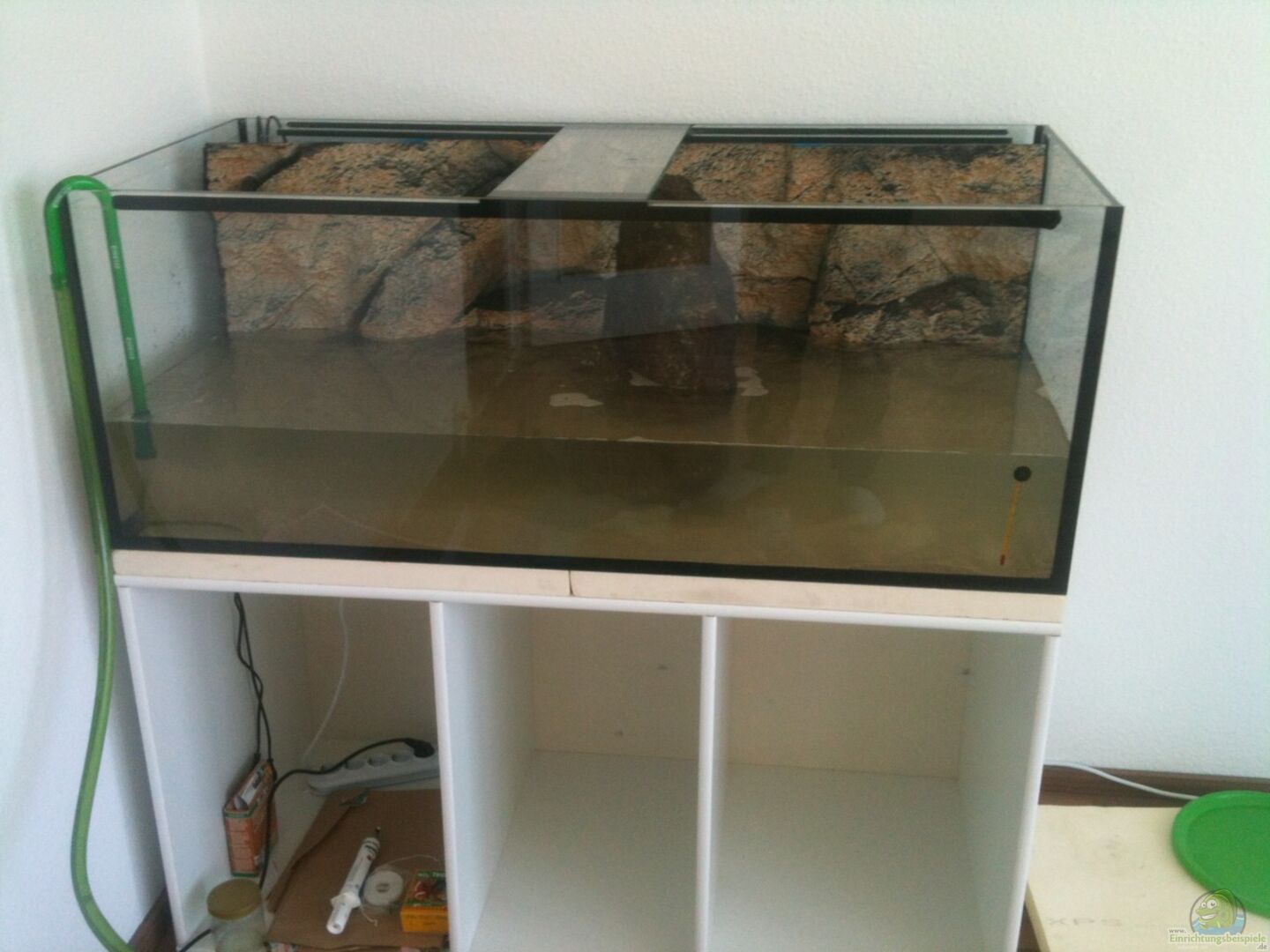 - Sonderma?? 130x60x50 cm, Sto??verklebt - das Becken steht auf einem selbstgebauten Unterschrank - zwischen Holz und Glas liegt eine 5cm starke Styrodurplatte