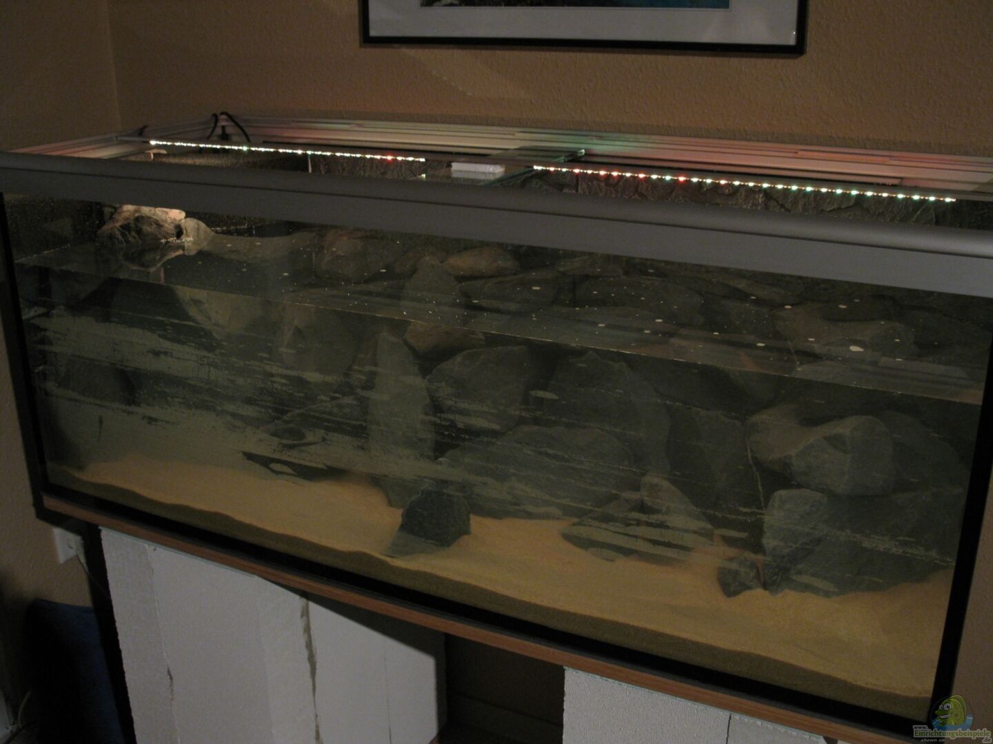 Aquarium: Zac: Aquarium 130x50x50cm, 325l, 10mm. Die Kanten sind diamantgeschliffen und sicherheitsverklebt. Zwischen dem Aquarium und der Siebdruckplatte ist eine 5mm dicke Aquariumunterlage. Unterbau: Selbstgebauter Unterbau aus Y-Tong Steinen und zwei 21mm dicken Siebdruckplatten. Zum Ausgleichen von Unebenheiten sind zwischen den Y-Tong Steinen, Siebdruckplatten und dem Fu??boden 5mm starke Selitac Laminatunterlagen. Die Y-Tong Steine wurden hochkant mit Fliesenkleber verklebt. Damit [...]